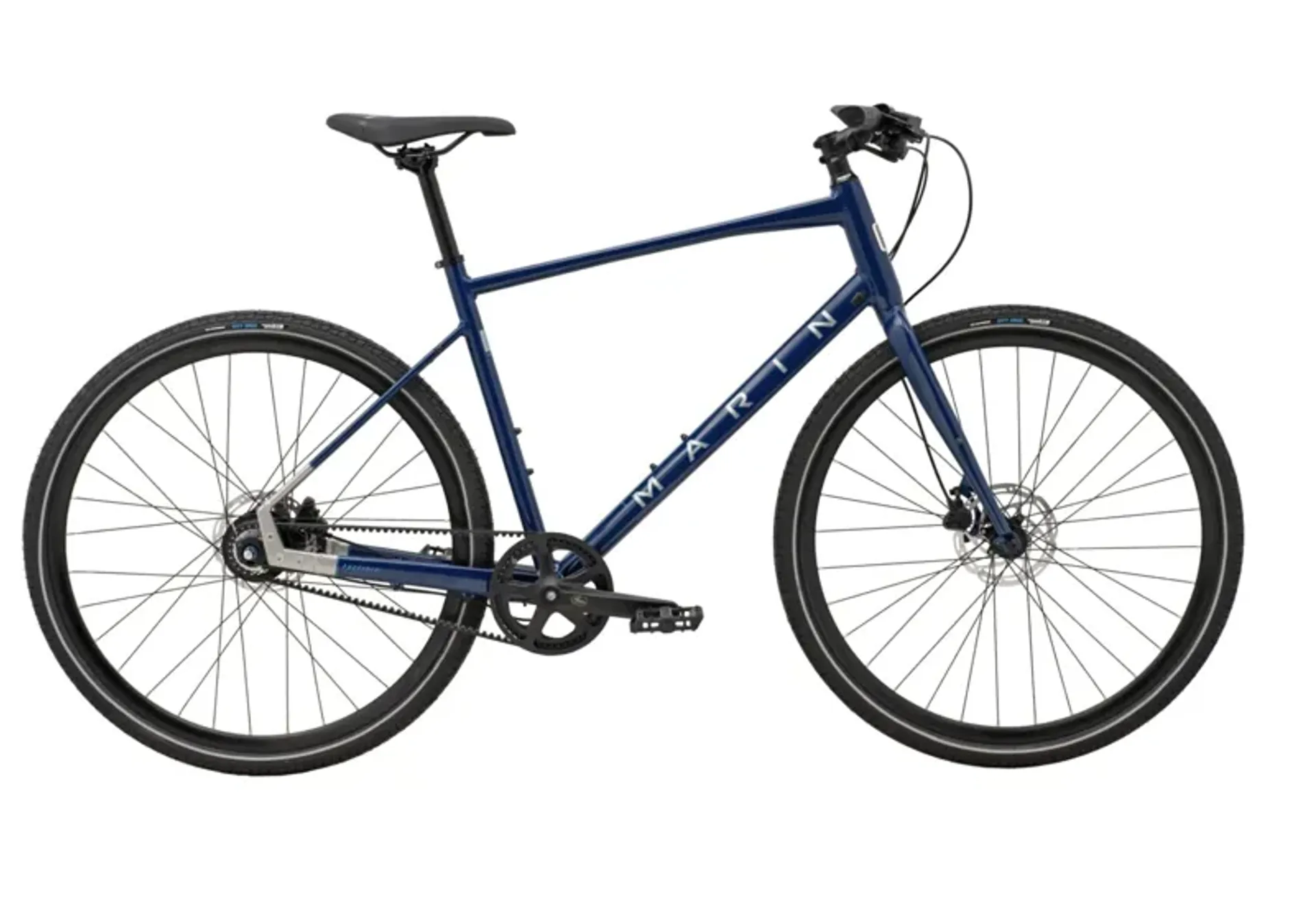 We’ve also added heaps of reliability and “woah, that’s cool!” with a Gates Carbon Drive 8-speed belt-driven drivetrain and internally-geared Shimano Nexus rear hub. Shimano hydraulic disc brakes, Vee Tire tires and plenty of reliable Marin components complete the package.