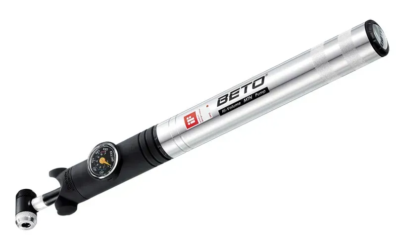 Beto TH-004AG One-Way Alloy Mini Pump w/Gauge and Hose in Silver